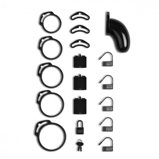Milujete, když nad ním máte moc a on si nemůže dělat co chce? Vzrušující dominanci mu předveďte ještě dnes večer. Nasaďte mu tento luxusní pás cudnosti LOCKDOWN Chastity Cage střední, oblečte se do slušivého sexy oblečku a sledujte jeho trápení, jak by chtěl, ale nemůže. Jeho erekce bude omezena na svobodě a jeho ptáček zůstane v kleci tak dlouho, jak jen budete chtít. Tento omezující prostředek disponuje středně velkým tělem, které je vyrobeno z odolného ABS plastu a obsahuje nádhernou krabici, která ukrývá 19 součástek pro vaše skvělé BDSM hrátky. Můžete si vybrat jeden z 5 kroužků na varlata s průměrem od 4,5 cm až 6,5 cm, což nabízí mnoho variant, aby přesně padl vašemu otrokovi a zefektivnil použití pásu. Jeho chloubu zamknete na kovovou kladku, ke které jsou připraveny dva klíče. Pokud svého otroka chcete nechat bez dozoru, zamkněte ho plastovou visačkou, která má na sobě unikátní číselný kód. Takových budete mít k dispozici 5. Díky kódu zjistíte, že otrok nezlobil, nesundal si pás po dobu vaší nepřítomnosti či jej rovnou vyměnil za nový. Poté můžete visačku jednoduše odstřihnout nůžkami. Penis obepne pevný obal zahnutého tvaru, který má na sobě okýnko pro přístup vzduchu a na konci prostor pro volný únik moči, takže může být uzamčen i delší dobu. Vnitřní průměr prostoru pro penis je 3,5 cm pro délku penisu přibližně 7,5 cm v klidném stavu.