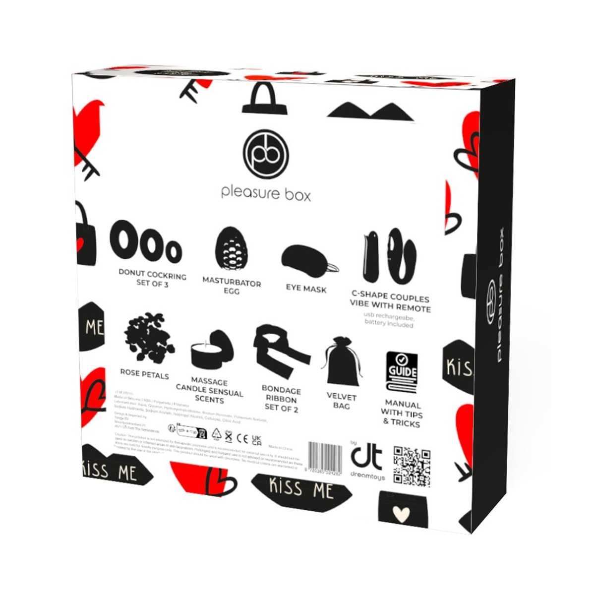Chcete si s partnerem vychutnat mnohonásobně zajímavější intimní dobrodružství a objevit sílu intenzivní rozkoše v ložnici? Pokud patříte k začátečníkům a nevíte s čím začít, pak bude pro vás naprosto ideální tato fascinující sada pro páry, která obsahuje vše, co budete potřebovat pro vzrušující prozkoumávání, posouvání hranic i zvýšení vašeho potěšení. Je vhodná ale také pro zkušené páry, kterým taktéž okoření a obohatí milostné hrátky. Čekají na vás pomůcky pro fascinující romantickou předehru, párový vibrátor, masturbační a erekční hračky, masážní svíčka, zasvěcení do něžného BDSM tajemství a v neposlední řadě také malý katalog v angličtině, který vás provede každým krokem vedoucím k nezkrotným extázím. Jedinečné dárkové balení potěší každého, kdo se nebojí experimentovat a hledat nové kouzlo erotické touhy.