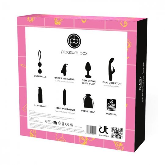 Chcete si vychutnat mnohonásobně zajímavější intimní dobrodružství a objevit sílu intenzivní rozkoše? Pokud patříte k začátečnicím a nevíte s čím začít, pak bude pro vás naprosto ideální tato fascinující sada pro ženy, která obsahuje vše, co budete potřebovat pro vzrušující prozkoumávání, posouvání hranic i zvýšení všeho potěšení. Je vhodná ale také pro zkušené ženy, kterým taktéž okoření a obohatí milostné hrátky. Čekají na vás pomůcky pro zpevnění pánevního dna, vibrační hračky, kolíček pro anální stimulaci, prémiové mazivo a v neposlední řadě také malý katalog v angličtině, který vás provede každým krokem vedoucím k nezkrotným extázím. Jedinečné dárkové balení potěší každou, která se nebojí experimentovat a hledat nové kouzlo erotické touhy.