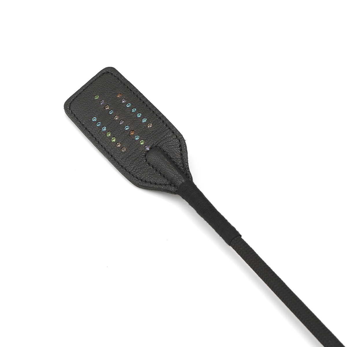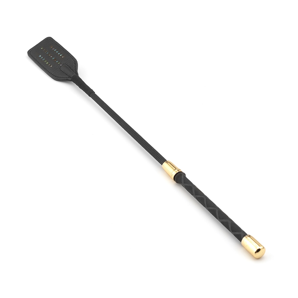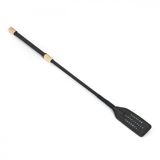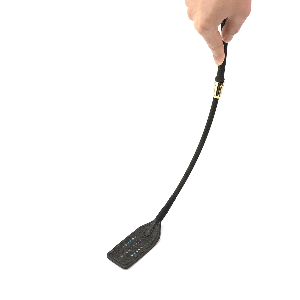 Máte doma zlobivou kočičku? Dnes večer ji můžete odměnit výpraskem, který zažehne tu správnou vášnivou jiskru. Ideálním pomocníkem k vykonání sladkého trestu bude překrásný jezdecký bičík Liebe Seele Shining Girl. Neuvěřitelně elegantní design a vybrané prvotřídní materiály prémiového japonského výrobce vás naprosto nadchnou. Část jeho plácačky střední velikosti má klasičtější promyšlený tvar a je vyrobena z vysoce kvalitní hovězí kůže. Je navíc ozdobena roztomilými barevnými štrasovými kamínky, a tak při větší razanci výprasku zanechá na kůži svůdný vzorek po plácnutí. Pevná a zároveň dostatečně flexibilní rukojeť přiměřené délky je potažena textilním materiálem a dopřeje vám komfortní manipulaci i perfektní zacílení ran. Detaily ze zlatého kovu jen dodávají tomuto modelu punc luxusu.