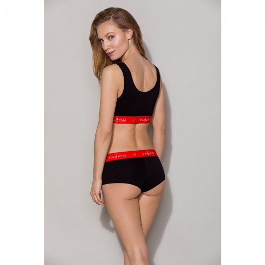 Chystáte se jít ven běhat a chcete si to užít v naprostém pohodlí? Zároveň ale nemáte ráda fádní a obyčejné prádlo? Známá značka PASSION, která je oblíbená pro svou smyslnost a erotickou eleganci přichází se svou sportovní kolekcí a nabízí tyto úžasné kalhotky PS003 PANTIES v sexy černé barvě. Kraťáskové, nebo chcete-li boxerkové kalhotky jsou trendy, nádherně vytvarují zadeček a přináší své nositelce výjimečný komfort. Zároveň toho ze všech střihů kalhotek zakrývají nejvíce, avšak i tak jsou mimořádně atraktivní. PS003 jsou ušity z příjemné elastické bavlny pohodlné i na celodenní nošení a díky své pružnosti vám poskytnou volnost pohybu potřebnou pro cvičení a sport. Flexibilní široký pás červené barvy je udrží na místě a společně se stříbrným vyšívaným logem podpoří také svůdný vzhled, který neomrzí a vy si tak toužebné mužské pohledy užijete i po náročnější aktivitě. Bavlněná podšívka v rozkroku vám jistě udělá radost. A společně s TOPEM PS003 vytvoří fantastickou dvojici, která k sobě ladí. TOP není součástí balení.