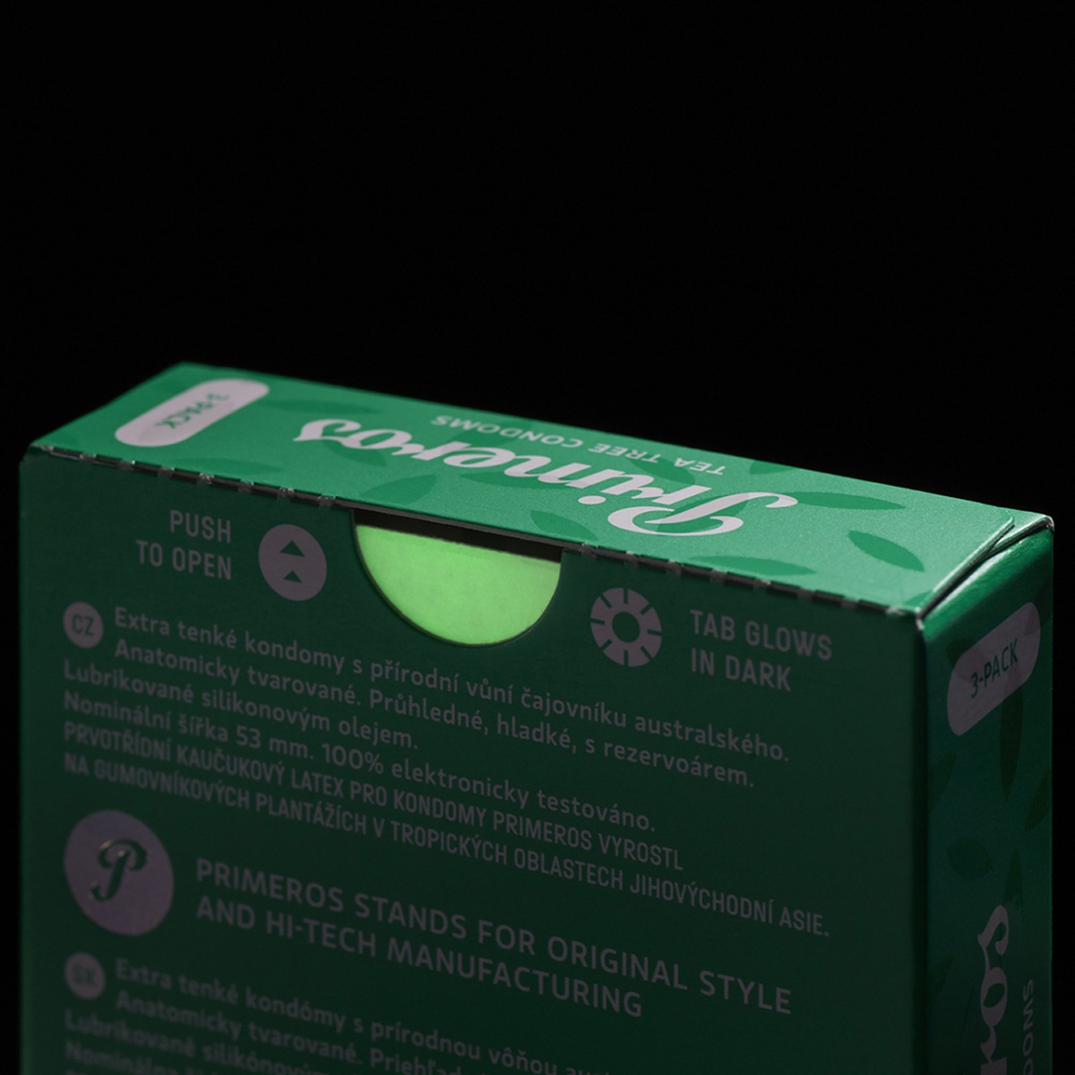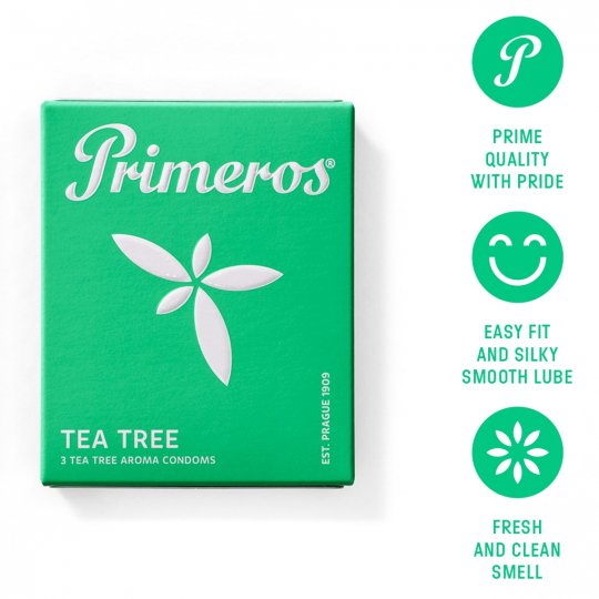 Tento latexový kondom Primeros TEA TREE je tedy prvotřídní veganské kvality a potěší vás hedvábně hladkým anatomicky tvarovaným tělem, který skvěle padne a díky jeho pružnosti bude pohodlný při používání, protože se báječně přizpůsobí. Disponuje rezervoárem, je průhledný a má neodolatelnou příjemnou přírodní vůni čajovníku australského. Vyznačuje se extrémně tenkou stěnou, která vám poskytne maximální citlivý prožitek, abyste si mohli vychutnávat své smyslné okamžiky. Pro fantastický průnik je lubrikován jemným silikonovým olejem, který neobsahuje spermicidy, parabeny ani jiné škodlivé látky.