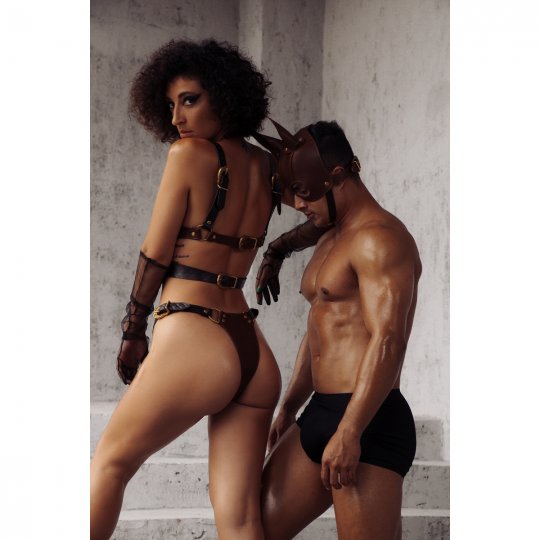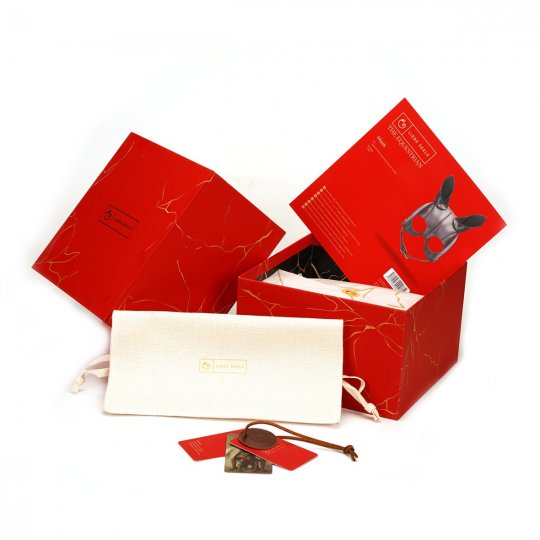 Milujete BDSM hrátky a potrpíte si na to nejluxusnější vybrané zboží, které vám přinese radost, potěšení a nekonečnou touhu? Vyberte si pro své milostné dovádění tuto dechberoucí masku Liebe Seele Equestrian a dopřejte si nádech elegance propojený se skutečným uměním. Okouzlující maska v jezdeckém stylu určena pro vašeho suba je ušita z pravé kůže, která byla zpracována v té nejvyšší možné kvalitě a japonské preciznosti. Viditelná část je ušita z hovězí kůže ve smyslné světle hnědé barvě, která jí dodá pevnost a odolnost. Spodní řemínek je z tmavšího odstínu hnědé a je navíc dekorován nezaměnitelným vzorem na povrchu. Podšívka masky z vnitřní strany je z jemné jehněčí kůže, díky které si vychutnáte sametově hedvábný dotek něhy, jelikož je krásně měkká a zpříjemní vaše pocity při nošení. I přes pravou kůži je maska poddajná a perfektně se přizpůsobí, takže váš komfort a pohodlí rozhodně nijak neutrpí. Ke všemu je perfektně tvarovaná a díky třem pevným švům dokonale sedí na obličeji. Má otvory na oči a fascinující dlouhé koňské uši pro vzrušující vzhled. K tomu napomůže také mimořádná zlatá přezka ze slitiny zinku ve tvaru podkovy, která ji nastaví pro přesně padnoucí velikost. V nádherné dárkové krabici pak naleznete navíc prémiový látkový pytlík z hebké tkaniny, ve kterém bude vaše pomůcka v bezpečí čekat na svou příležitost.