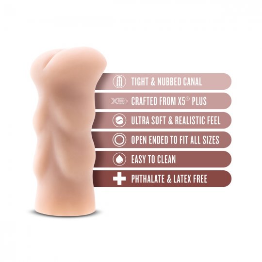 Tělo masturbátoru ve světlejší tělové barvě je vyrobeno z prémiového realistického materiálu X5® Plus, který na dotek i při používání dokonale napodobuje lidskou pokožku. Je mimořádně pružný, poddajný a zároveň pevný, aby zajistil autentický pocit těsnosti při každém pohybu. Vnitřní úzký stimulační tunel je zdoben sofistikovanou texturou s výraznými hroty, které špičkově masírují penis. Roztažitelný otvor s půvabnými detaily působí přirozeně a svůdně. Tělo pak zajišťuje pohodlné držení a snadnou manipulaci i při delším používání.