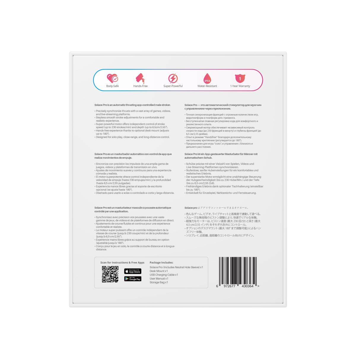 Masturbátor stačí držet a bude dělat veškerou práci za vás, nebo jej připevnit ke stojanu na stůl a užívat si dobrodružství bez použití rukou. Díky 180° nastavení pomůže najít optimální úhel, ať už stojíte, sedíte či ležíte. Jeho velmi výkonný motor s extra tichým chodem vás ohromí až 300 přírazy za minutu. Lze si vybrat ze 4 nastavení zdvihu a z 8 rychlostí přírazů, které ucítíte až v konečcích prstů. Navíc máte k dispozici 4 režimy automatického chodu, který bude sám nečekaně měnit nastavení vašeho potěšení. Propojitelnost s mobilní aplikací pak rozšíří jeho možnosti na téměř nekonečné. Je tak skvělý i na hrátky s partnerem na dálku odkudkoliv na světě a interaktivně spolupracuje s ostatními pomůckami.