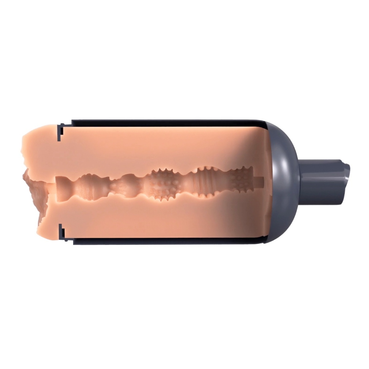 Rukáv masturbátoru je měkký a flexibilní, takže se skvěle přizpůsobí. Má dostatečnou délku vstupu 17,8 cm. Uvnitř naleznete luxusní stimulační tunel, který je propracovaný tak, aby vás dovedl až na vrchol erotické extáze. Úzký prostor plný vzrušujících žeber a výstupků vám po průniku dodá výjimečný prožitek vášně. Výklopné víčko pak slouží jako regulátor vnitřního podtlaku, který napodobuje orální sání pro ještě intenzivnější pocit. Pro ještě výjimečnější zážitek odšroubujte víčko a vyměňte jej za nástavec pro extra silnou přísavku s nastavitelným úhlem, která je součástí balení. Zafixujte ji na koupelnových kachličkách a vychutnejte si tak báječnou jízdu bez nutnosti používat ruce.