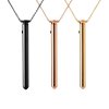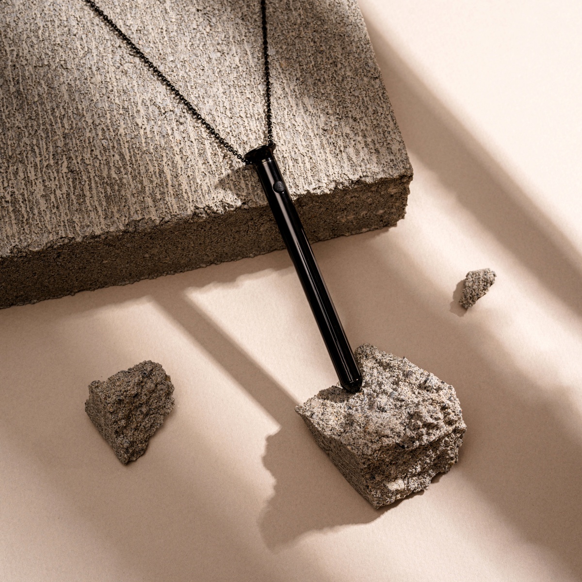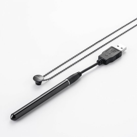 Tento přívěek v monochromatické černé barvě je vyroben z odolné nerezové oceli prvotřídní kvality, neobsahuje nikl a je zcela nezávadný pro lidskou pokoku. Jeho hladký letěný povrch pohladí vae partie s neuvěřitelnou něností. Vzhledově trochu připomíná hřebíček díky malé tenké tyčince s hrotem a zesílenou čepičkou. Ovládá se pomocí černého silikonového tlačítka. 66 cm dlouhý řetízek má malá decentní očka a hodí se takřka ke vemu.