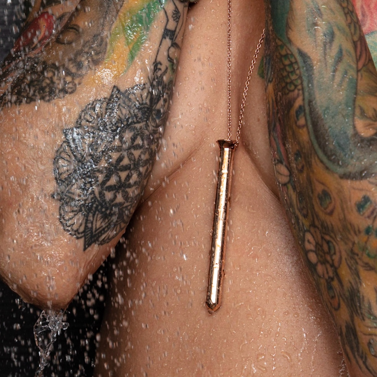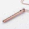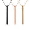 Tento přívěek v barvě růového zlata je vyroben z odolné nerezové oceli prvotřídní kvality, neobsahuje nikl a je zcela nezávadný pro lidskou pokoku. Jeho hladký letěný povrch pohladí vae partie s neuvěřitelnou něností. Vzhledově trochu připomíná hřebíček díky malé tenké tyčince s hrotem a zesílenou čepičkou. Ovládá se pomocí černého silikonového tlačítka. 66 cm dlouhý řetízek má malá decentní očka a hodí se takřka ke vemu.