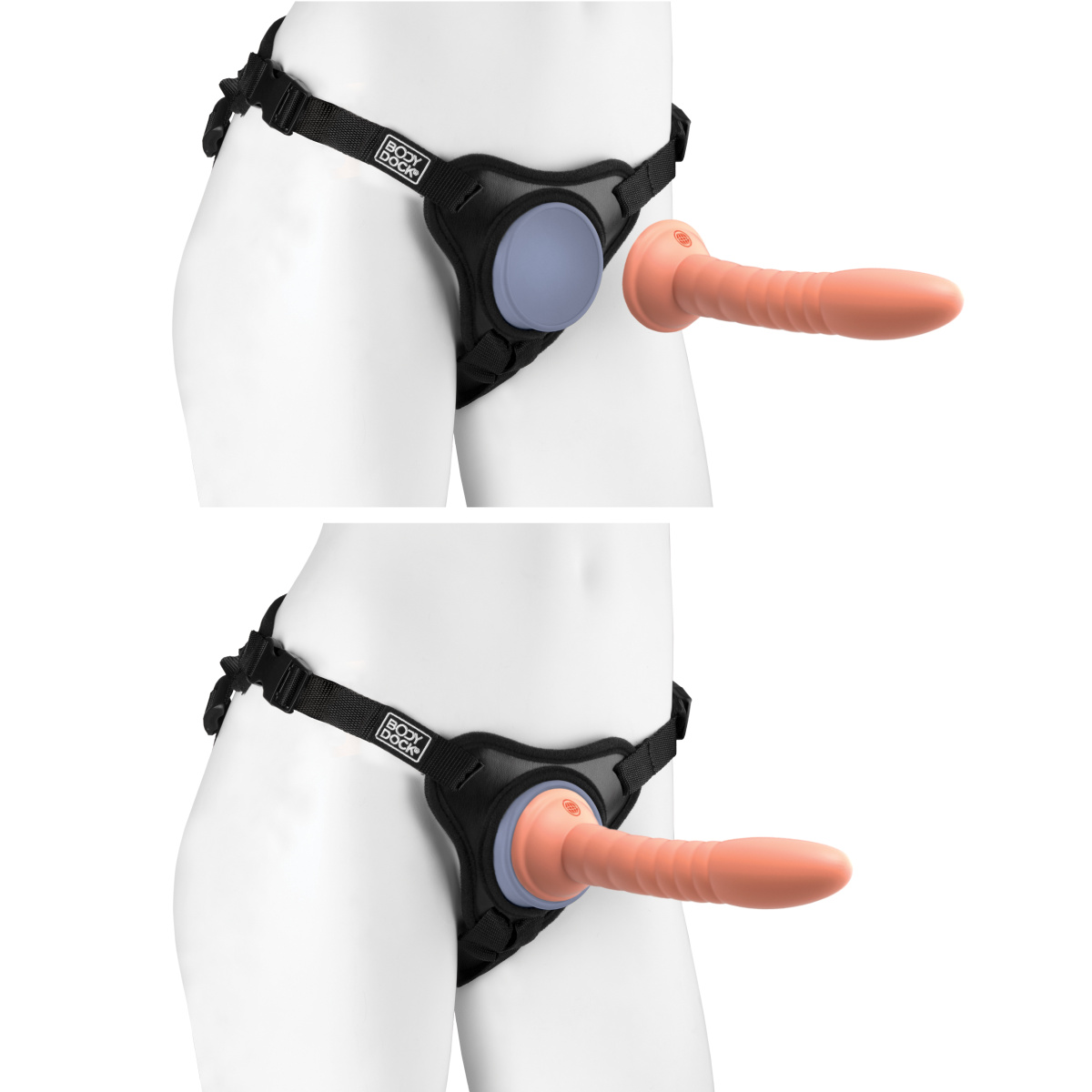 Všechna dilda řady Dillio Platinum jsou kompatibilní s tímto unikátním postrojem Body Dock®. Díky speciálnímu a extra snadnému uchycení pomocí silné přísavky jej rychle a jednoduše zaměníte za jiné. I přes nenáročné uchycení bez složitého povlékání kroužky však skvěle a velmi pevně drží na svém místě. Různá dilda ke svému postroji můžete pořídit zde.