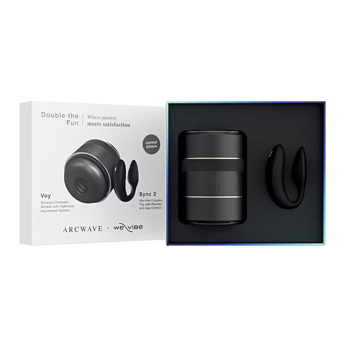 Vychutnejte si dvojnásobné intenzivní milostné spojení, kde se vášeň setkává s vzrušujícím uspokojením. Tato sada v limitované edici obsahuje masturbátor značky Arcwave a párový vibrátor značky We-Vibe, které vám dopřejí bohatou kombinaci smyslných momentů vedoucí k dokonalým prožitkům extáze. Fantastické sólové i párové hrátky rozpálí teplotu v ložnici a dodají svobodný prostor pro rozvinutí fantazie. Elegantní luxusní balení bude ideálním pozorným dárkem.