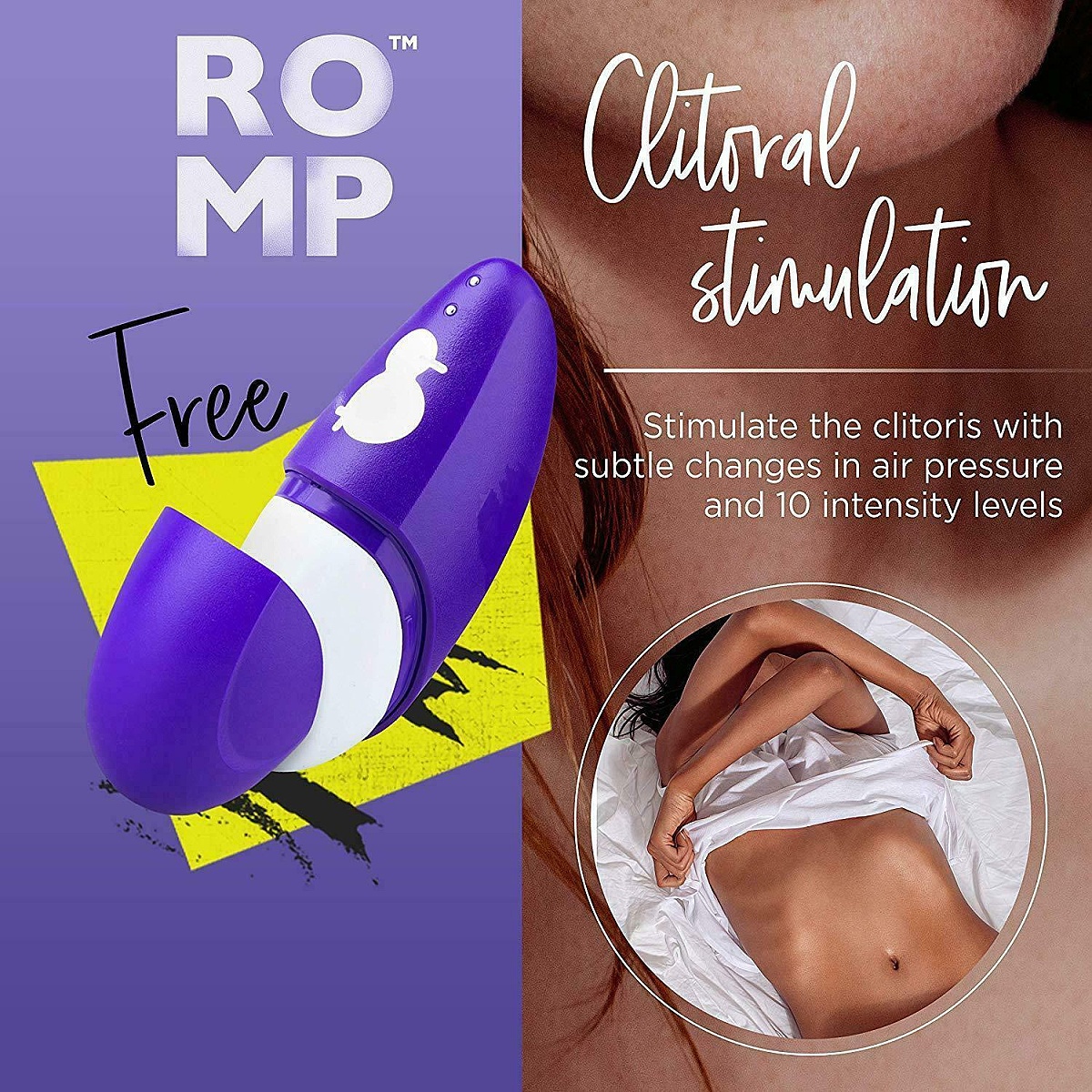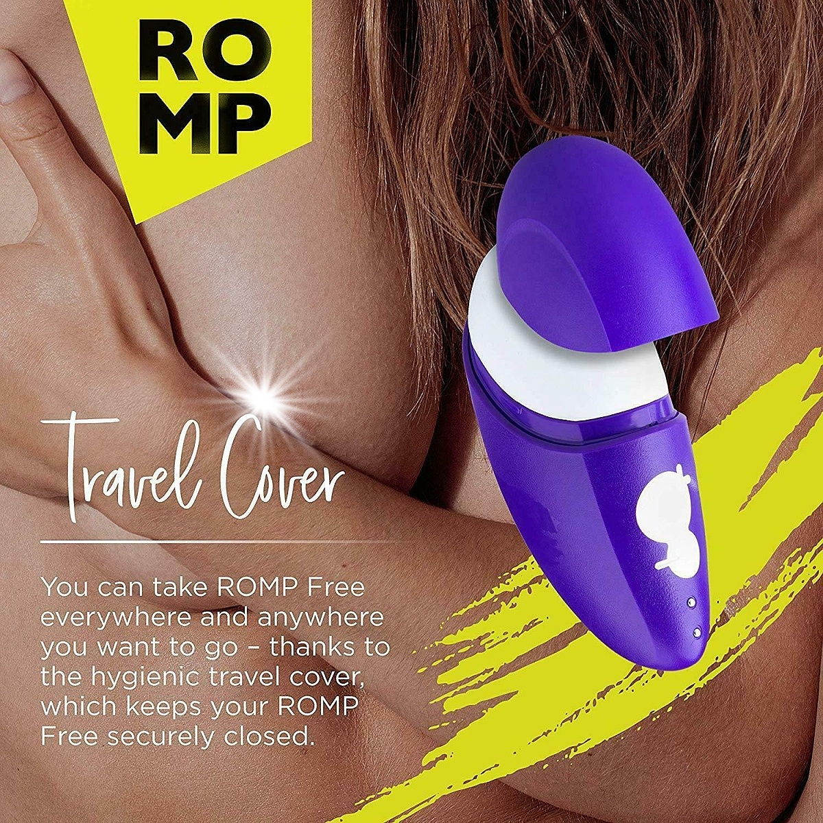 Již jste pocítila sílu bohatého orgasmu způsobenou tlakovými vlnami? Chystáte se odjet a nechcete se své oblíbené pomůcky vzdát? Nemusíte. Rozmazlete se i na cestách a dopřejte si fenomenální vyvrcholení doprovázené vzrušujícími intimními prožitky. Stimulátor klitorisu ROMP FREE Clitoral Stimulator osvobodí a uvolní vaše tělo, ať už budete kdekoliv. Samozřejmě je vhodný také do ložnice, pokud preferujete menší nenápadné hračky. Maličká cestovní verze luxusního stimulátoru z odolného matného ABS plastu fialové barvy s hubičkou z ultra hebkého a sametově jemného silikonu v sobě ukrývá diskrétní extrémně tichý motor s výkonnou patentovanou technologií Pleasure Air™, která nevyruší okolí ani vaše slastné sténání. Unikátní bezkontaktní stimulace klitorisu prostřednictvím tlakových vln vám otevře třináctou komnatu dosud nepoznané rozkoše. Díky této technologii poskytuje úžasnou bezdotykovou stimulaci klitorisu. Tlakové vlny vytvářejí vibrace, které nezpůsobují ztrátu citlivosti. Hubička obklopuje oblast klitorisu bez přímého dotyku což je metoda, kterou miliony spokojených uživatelek po celém světě hodnotí jako velmi rychlý a téměř zaručený způsob dosažení intenzivního orgasmu. Vybírat si můžete z 10 intenzit síly pulzací, takže si přesně nastavíte vámi preferovanou rozkoš. To si můžete vychutnat také ve sprše či ve vaně, protože je plně vodotěsný a energii mu doplníte pomocí přiloženého magnetického USB kabelu. Hygienická krytka jeho hubičku uschová v čistotě a v bezpečí i když bude čekat na svou chvíli třeba v kabelce.