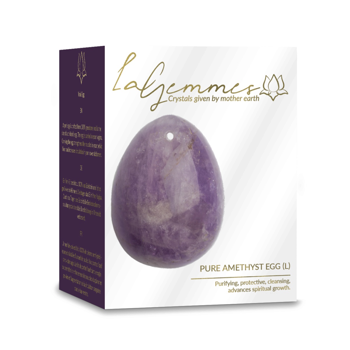 Věříte na přírodní sílu a energii získanou z minerálních kamenů? Pořiďte si tuto unikátní erotickou pomůcku a čerpejte nekonečné podpůrné vlastnosti čisté přírody. Unikátní vajíčko La Gemmes YONI v neuvěřitelně elegantním designu vám nabízí mimořádné potěšení a dokonalé ruční zpracování. Je celé vyrobeno z fenomenálního leštěného ametystu. Tento drahokam vás pohladí na těle i na duši. Má lesklý a hladký povrch a prožijete s ním intenzivní vášnivé chvíle. Disponuje malou dírkou, takže jej můžete nosit jako šperk na krku, schovat jej do podprsenky a nosit na holé kůži, ale především je určeno jako nástroj na posílení pánevního dna.
