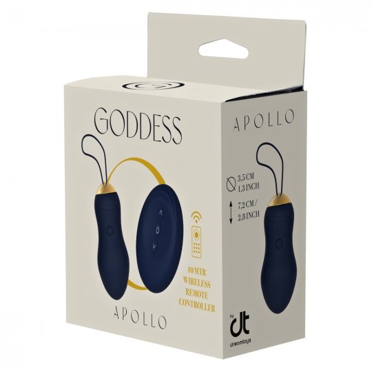 Milujete vnitřní stimulaci a chcete si užít smyslné intimní chvilky kdekoliv i mimo domov? Pak bude toto vibrační vajíčko Dream Toys GODDESS COLLECTION APOLLO ideální přesně pro vás. Elegantní tmavě modrý design se zlatým prvkem potěší každou ženu svým vzhledem. Vajíčko v krásném designu je malé a sympatické perfektní i pro začátečníky. Je vyrobeno z ultra hebkého a měkkého silikonu prvotřídní kvality. Má hladké a hedvábné ergonomicky tvarované tělo, které se perfektně přizpůsobí ve vašem nitru. Pevné manipulační poutko se schová v kalhotkách a postará se o bezpečné vyjmutí. Jistě vás překvapí svými 10 vibračními a pulzačními režimy, které pohání velice výkonný motor. Můžete jej ovládat prostřednictvím tlačítka na jeho těle, ovšem když už bude uvnitř, oceníte dálkové ovládání z odolného ABS plastu s příjemným PU povrchem a dosahem až 10 metrů, díky kterému budete mít svou rozkoš plně v rukou. Nebo se rozhodnete dát ovladač partnerovi a užít si nečekanou vlnu vzrušení? Využijte jeho vodotěsnost IPX7, které dovolí jej použít i ve sprše nebo ve vaně. Ovladač voděodolný není. Obě zařízení ovšem pohodlně dobijete přiloženým USB kabelem, takže vám odpadne starost nakupovat baterie.