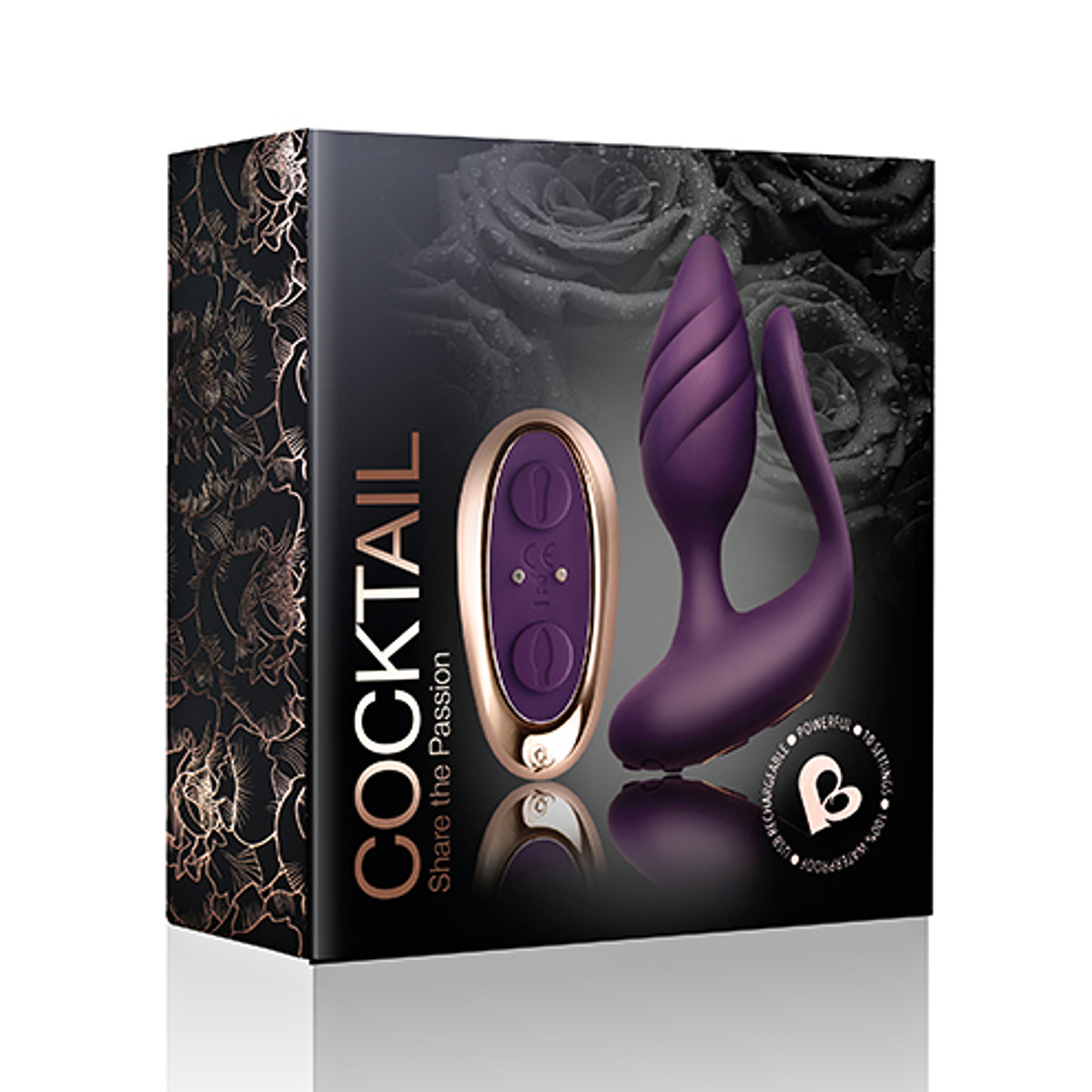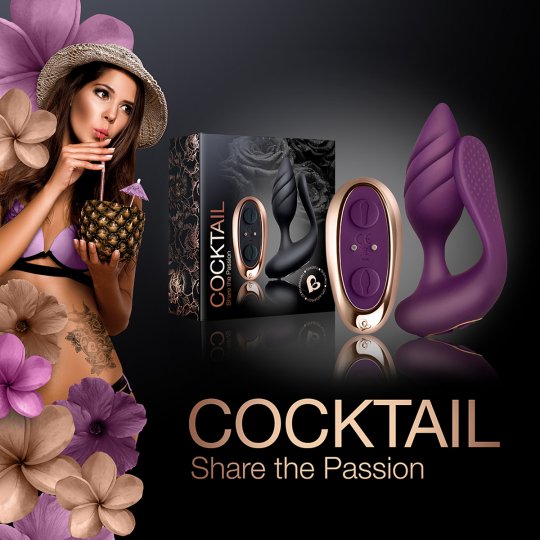 Nejsou vám anální hrátky cizí a rádi je kombinujete s milostným stykem? Vychutnejte si s partnerem smyslný koktejl vášně přímo při sexu a prožijte mimořádné fenomenální intimní okamžiky. S tímto análním vibrátorem Rocks-Off COCKTAIL v naprosto ohromujícím designu fialové barvy s akcenty z růžového zlata budou vaše fantazie a tajné sny splněny. Je vyroben z ultra hebkého silikonu prvotřídní kvality, který je nezávadný pro lidskou pokožku a pohladí vaše partie s neuvěřitelnou něžností. Maličký anální kolíček typického kuželovitého tvaru má podlouhlé štíhlé tělo a úzkou zakulacenou špičku, která usnadní penetraci. Je měkký a flexibilní, takže se vám perfektně přizpůsobí a má jemné stimulační drážky, které decentně podráždí váš zadeček. Ozdobená základna je prodloužena tenkým jazýčkem ve tvaru kapky, který se vkládá do vagíny a jeho zploštělé tělo s dráždivým vzorem bude laskat nejen vnitřek vaší vagíny, ale také bude stimulovat penis partnera. Propojíte tak veškeré intenzivní pocity z tohoto vzrušujícího momentu.