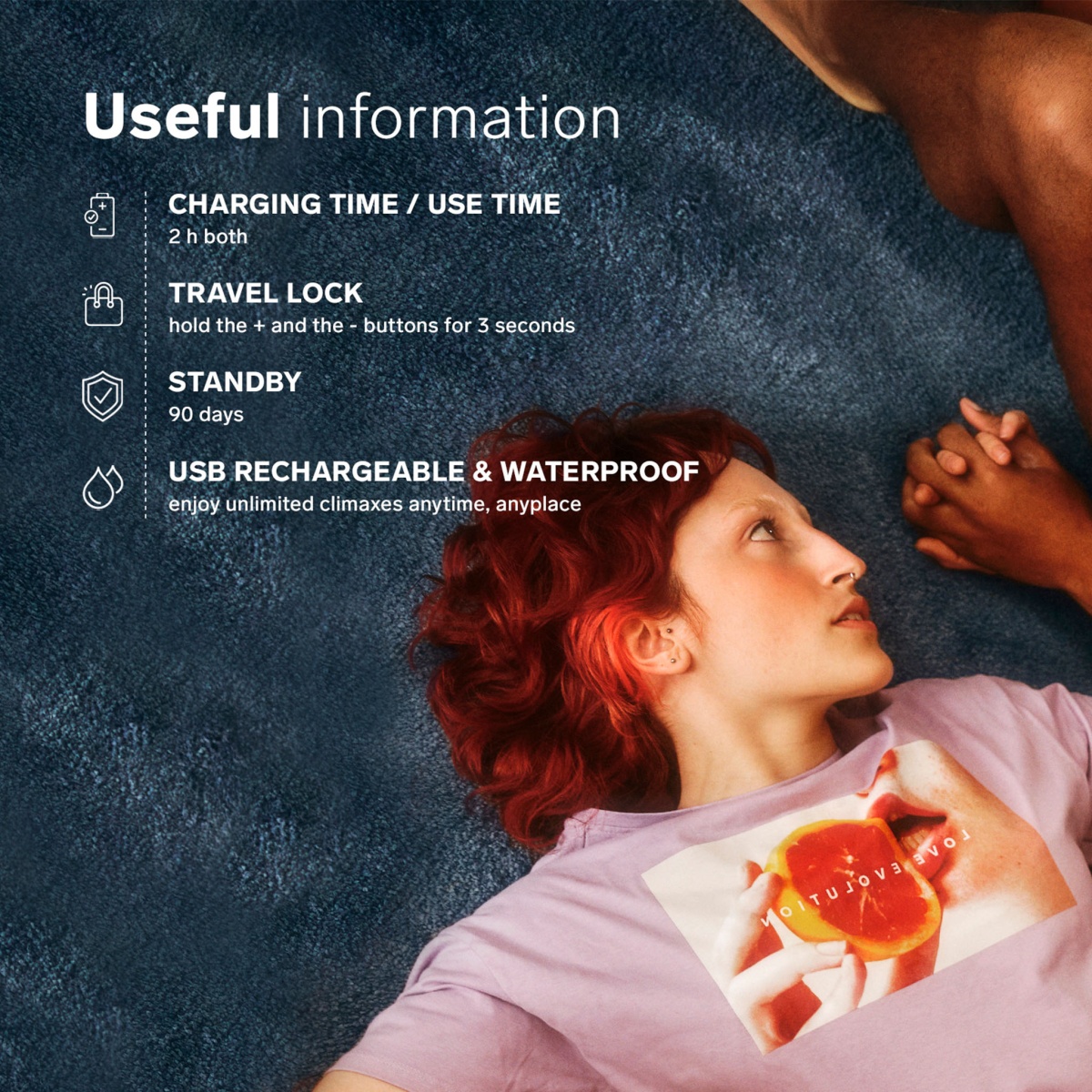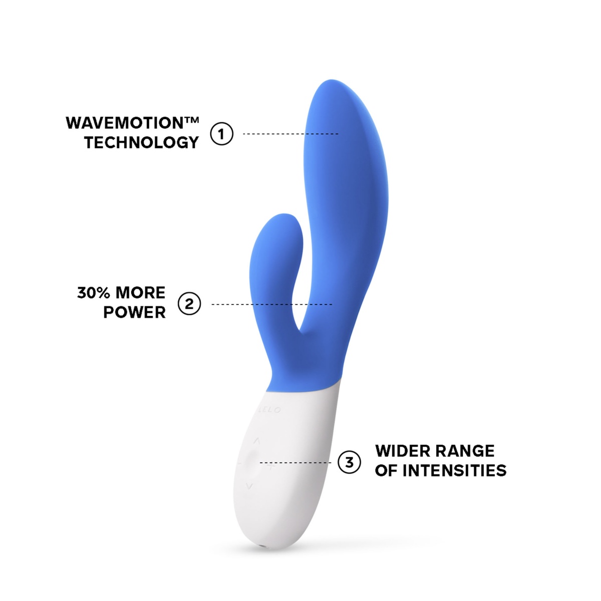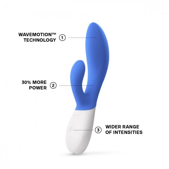 Chtějte od své intimní pomůcky ještě více. Zkombinujte stylový design s intenzivními prožitky z vibrací a současnou stimulaci G bodu a klitorisu, která vás doprovodí na cestě za nespoutanou extází. Vychutnejte si naprosto neodolatelný a bouřlivý orgasmus a objevte tento jedinečný vibrátor LELO INA WAVE 2 v pastelové tmavě modré barvě. Jedná se o vylepšenou verzi předchozího modelu. Byl tedy inspirován uživateli a upraven tak, aby poskytl ještě výraznější milostné okamžiky a propojil všechny smysly. Je vyroben z hedvábně jemného a sametově hebkého silikonu prvotřídní kvality, který je zcela nezávadný pro lidskou pokožku a pohladí ji s mimořádnou něžností. Rabbit vibrátor má dlouhé ergonomicky zahnuté tělo s úzkou špičkou, která usnadní penetraci a pohodlně vyhledá bod G. Ve středu je lehce rozšířený a ke kořenu se zužuje pro příjemnější používání. Flexibilní stimulátor klitorisu se pak zaměří na cílené dráždění jednoho z nejcitlivějších erotogenních zón. Oproti předchůdci vám nabízí hned 12 vibračních a pulzačních rytmů, které obstarají dva extra tiché motory s o 30% vyšším výkonem. Moderní patentovaná technologie WaveMotion™ vám nedovolí myslet na nic jiného, než na euforické a hypnotické prožitky z úžasné pikantní chvilky. Tato funkce napodobuje hbité prsty vašeho milence. Prozkoumejte různé vzory a intenzity, dokud nezažijete dvojité vyvrcholení. Funkce zámku tlačítek se stane pak ideální pro cestování, abyste nikde nezůstala bez svého nového miláčka. Vibrátor je navíc plně vodotěsný pro nekonečnou zábavu ve sprše či ve vaně a energii mu doplníte pomocí přiloženého USB kabelu. V exkluzivní krabičce bude perfektním dárkem. Součástí balení je také saténový pytlík pro bezpečné uložení vibrátoru.