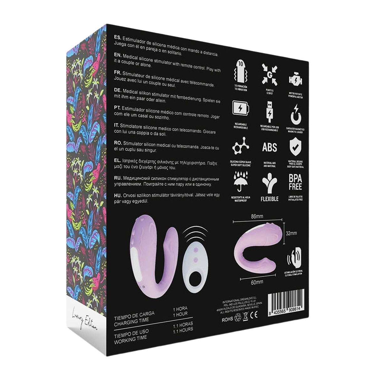 Hledáte pomocníka k vašim společným hrátkám, který vám zpestří milování a zintenzivní vaše prožity? Vezměte si pod peřinu partnerský vibrátor MIA RIN REMOTE CONTROL PARTNER v jemné světle fialové barvě. Jeho úžasné flexibilní tělo z lékařského hebkého silikonu vás bude jemně hladit. Jeho vcelku větší průměr vás bude neskutečně vzrušovat. Záměrně cílený na G-bod a klitoris si vaše partnerka zamiluje a jeho silných 10 vibračních a pulzačních režimů bude dráždit i váš penis. Jeho stimulační textura nedovolí polevit v pocitu blaha a vy se můžete oddat zcela volnému průchodu emocí. Tlačítko na těle vibrátoru nebo dálkové ovládání s dosahem až 20 metrů vám pak nerušeně dovolí přepínat jednotlivé režimy podle chuti. Zajímavá možnost je také nechat si vibrátor v kalhotkách, ovladač předat partnerovi a vyrazit třeba na procházku. Vhledem k jeho velmi tichému provozu zažijete diskrétní vzrušující zábavu. Je voděodolný takže jej můžete použít i ve sprše a nabijete jej pomocí přiloženého magnetického USB kabelu. Dálkový ovladač voděodolný není a je poháněn baterií CR2032. Dodáván je v krásné dárkové krabičce.