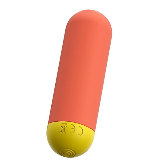 Patronka v elegantním provedení broskvově růžové barvy se žlutým akcentem je vyrobena z odolného pevného ABS plastu, který je potažen sametovým hedvábně jemným silikonem prvotřídní kvality, který pohladí vaši pokožku s neuvěřitelnou něžností a je zdravotně nezávadný. Má krátké štíhlé tělo se zakulacenou špičkou. Na konci naleznete jediné ovládací tlačítko, které usnadní ovládání.