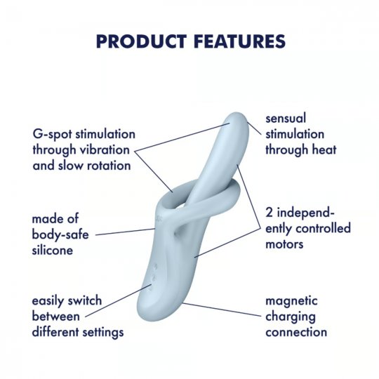 Tento vibrátor v moderním designu šedé barvy je vyroben ze sametově jemného silikonu prvotřídní lékařské kvality, který pohladí vaše partie s maximální něžností a je zcela nezávadný pro lidskou pokožku. Má smyslné hladké linie rovného těla, které disponuje úzkou špičkou usnadňující penetraci. Rameno obepíná unikátní měkký kroužek, který dráždí klitoris i stydké pysky, čímž zasáhne větší plochu pro dechberoucí osobní potěšení. Rukojeť se dobře drží v ruce, takže nabídne pohodlnou manipulaci a ukrývá tři snadno dostupná ovládací tlačítka. Na spodní straně má pak dva kovové piny pro magnetické nabíjení.