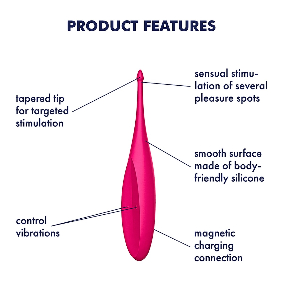 Nudí vás již klasické hračky, které sice dokáží vykouzlit úsměv na vaší spokojené tváři, ale ráda byste zažila něco nového? Pak se seznamte s jedinečným vibrátorem SATISFYER TWIRLING FUN elegantní růžové barvy a vaše sexy zábava již nikdy nezažije nudu.