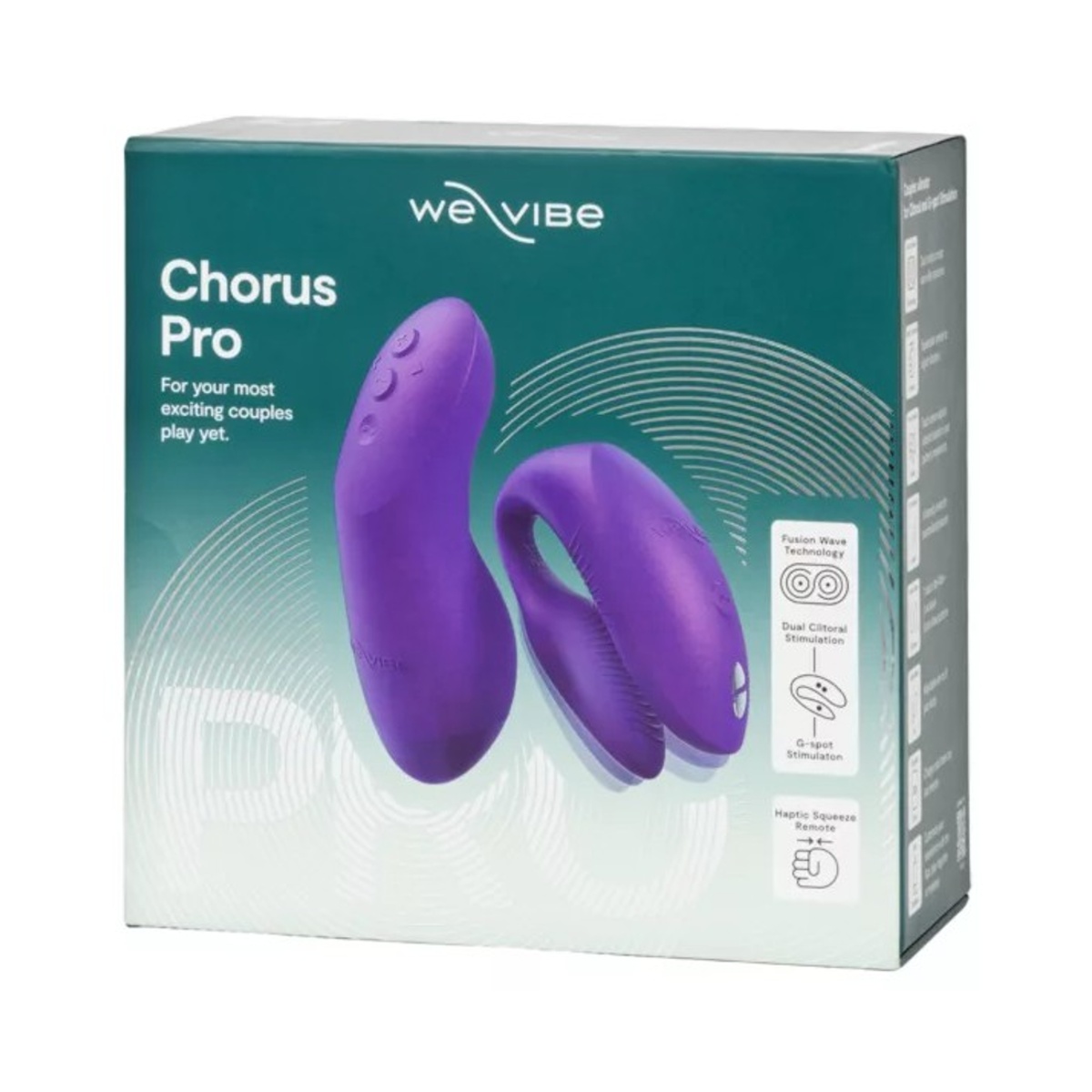 Vibrátor Chorus Pro se pyšní jedním motorem uvnitř kratšího ramena pro masáž bodu G i penisu a duálními motory s technologií Fusion Wave, které poskytují hlubší a dunivější vibrace klitorisu. To vše navíc v naprosto tichém chodu, který nevyruší vaše myšlenky. Nabízí fascinujících 10 vibračních a pulzačních rytmů a díky dálkovému ovladači lze navíc přidat až 11 intenzit síly vibrací. S propojením s mobilní aplikací ke všemu získáte další rozmanité možnosti včetně režimu dotykového snímání, které reaguje na kontakt partnerova těla, což podpoří vaši tělesnou blízkost. Tato funkce je dostupná pouze s aplikací.